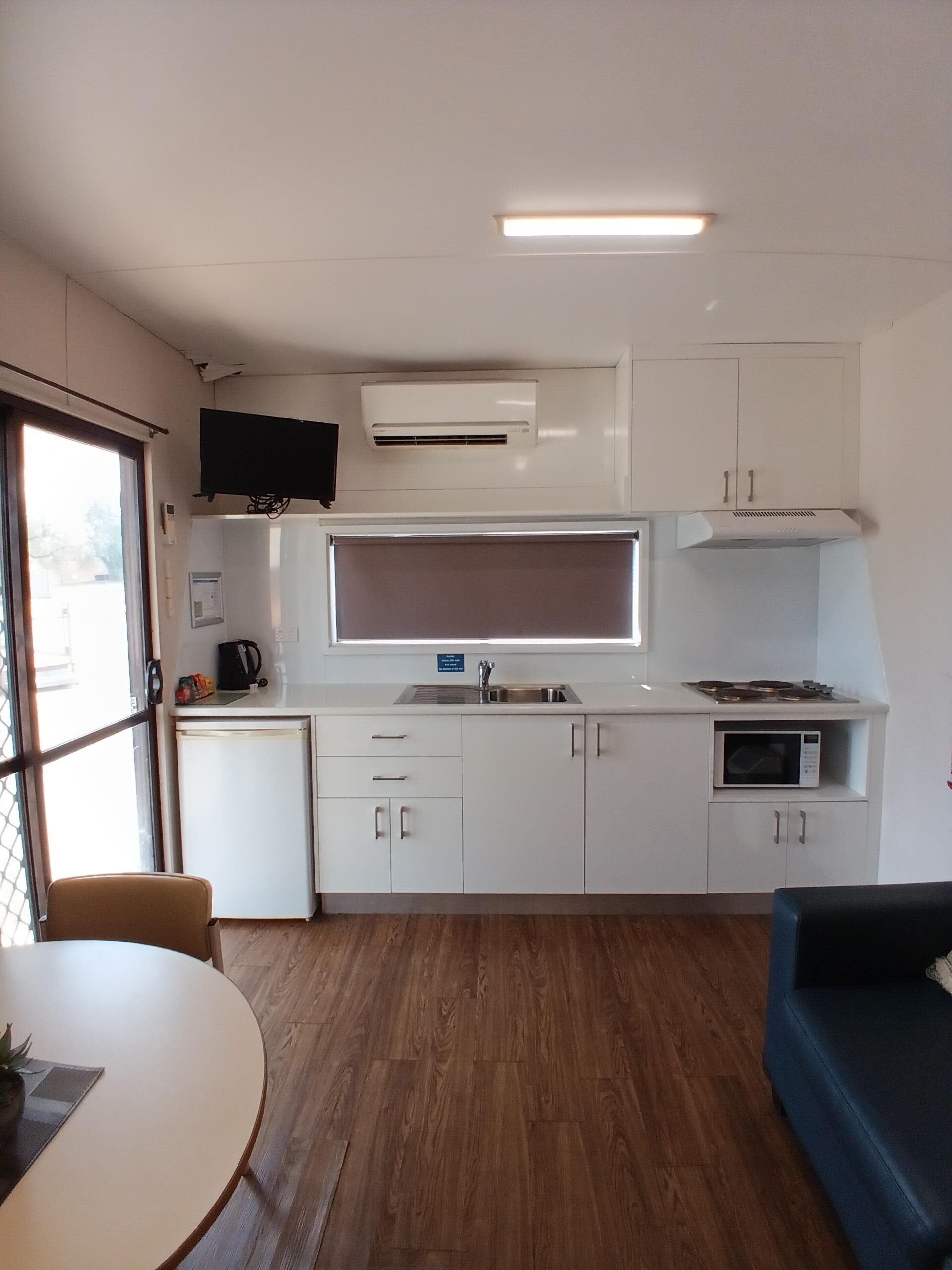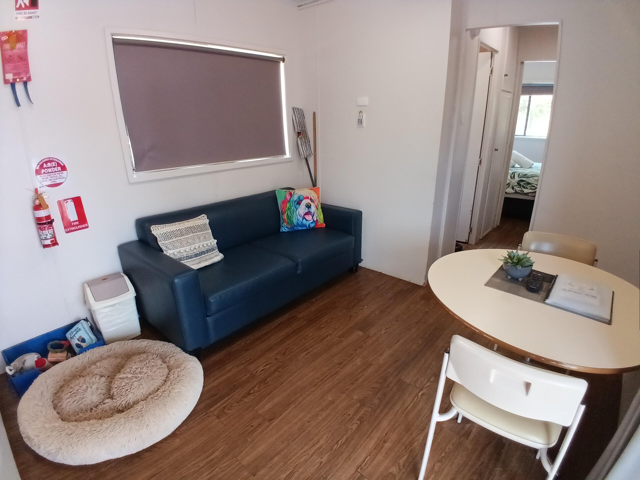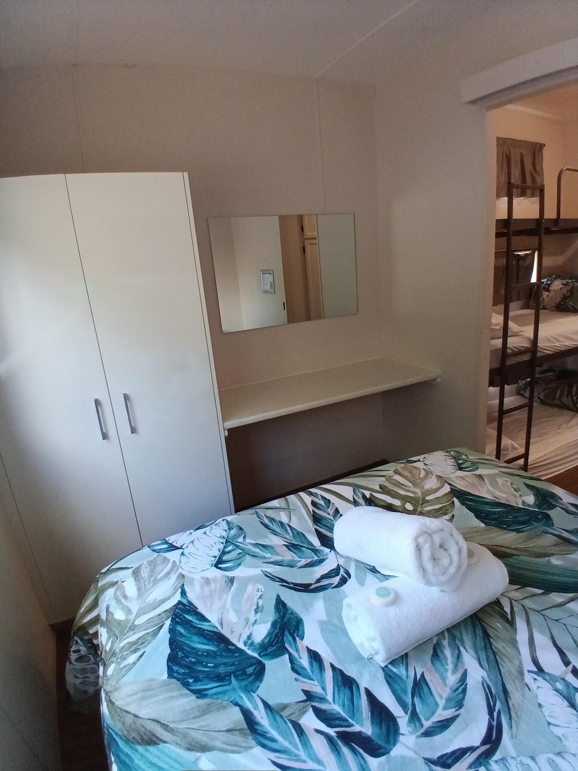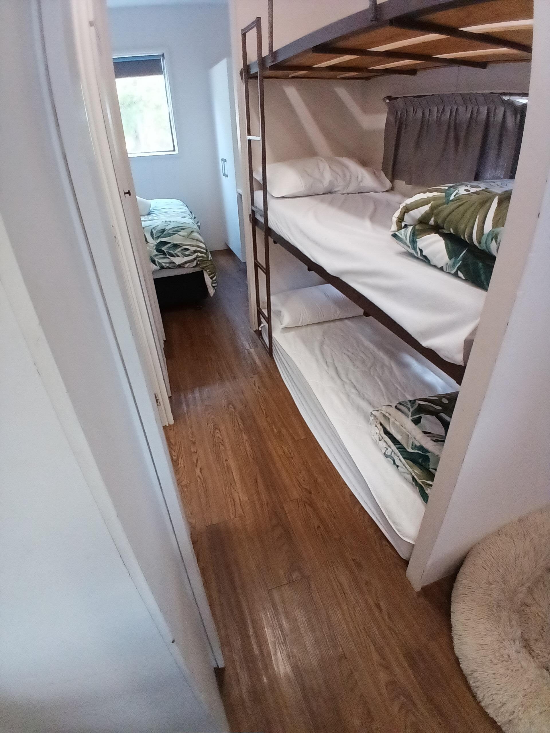 A standard pet-friendly cabin includes a double bed and a set of bunk beds. Sleeps 4.